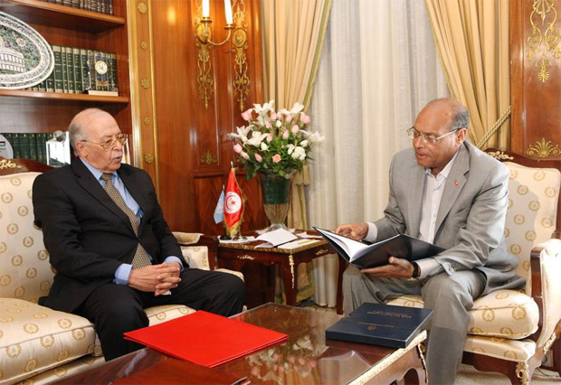 Chedly Ayari, le fantoche du FMI, avec Moncef Marzouki le pantin des Frères musulmans et le mercenaire No1 du Qatar.